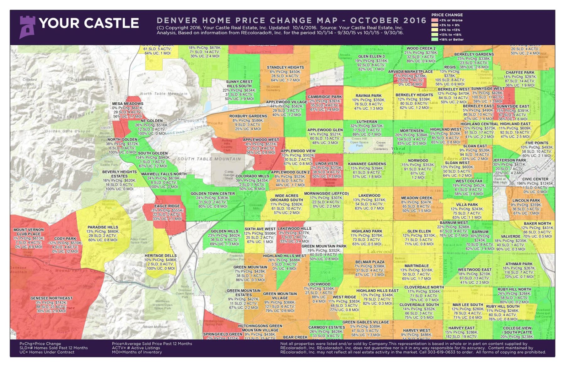Every quarter we are proud to bring to you the latest Denver Metro Price Change Maps! This tool is created and developed to give you a clear sense of current real estate trends in each metro Denver neighborhood. For the first time, we can look inside each neighborhood and see what the real estate market looks like at a hyper-local level. This will help you make a better decision whether you are buying, selling or investing.