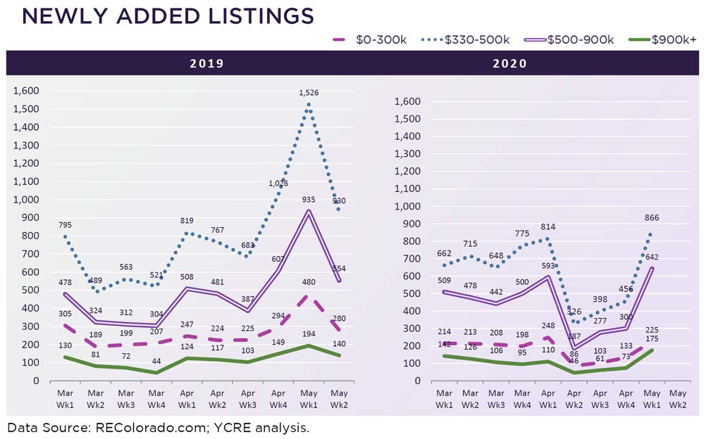Showings have returned to last year’s rates! New listings doubled from numbers seen over the last few weeks. The number of under contract homes more than doubled, bringing it closer to last year’s levels.