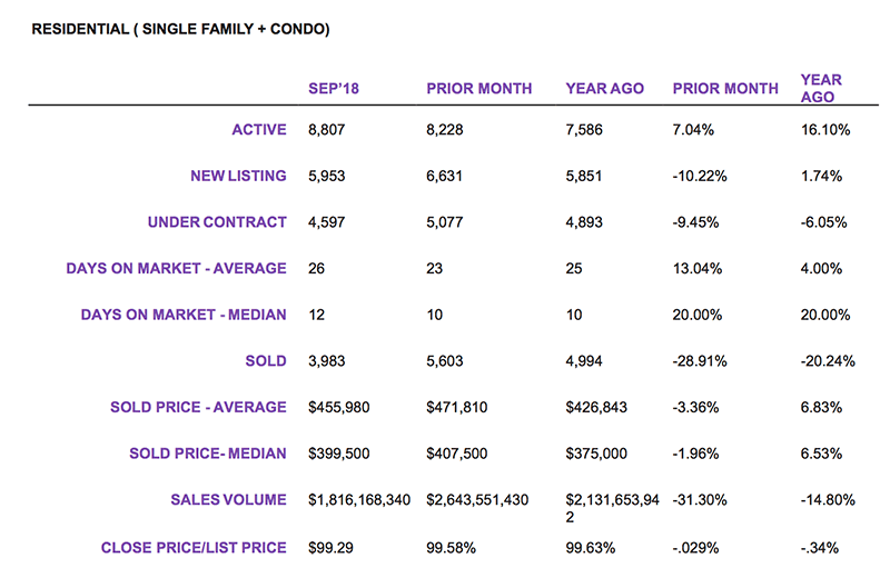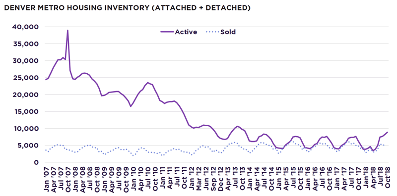 Let’s begin with the September Data Snapshot provided by the Denver Metro Association of Realtors. What you see from the past couple of months is a market with increased inventory, resulting in longer Days on Market and a year-over-year price increase that has begun to slow down and return to the long-term average of 6 percent per year. By no means should we be alarmed by this data. The market is still quite strong – just not as strong as it was a few months ago. The increased inventory (16.1 percent higher than September 2017) and resulting higher Days on Market is what I would expect to be the precursor to a cooling market. While it’s only the past couple of months that have exhibited this slowdown, a higher inventory of properties on the market will eventually lead to a market more favorable for buyers.