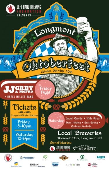 “For the 7th year in a row, Longmont Oktoberfest is Longmont’s favorite fall gathering featuring national touring act and Red Rocks headliner JJ Grey and Mofro, 10+ breweries, local food, and games for all ages. Ranked as a “Must Visit Oktoberfest” by DRAFT magazine, Longmont Oktoberfest celebrates the summer’s transition to fall on October 5th and 6th at Roosevelt Park. Pull out your lederhosen and dirndls, grab a pretzel or brat, and don’t forget a pint from your favorite Longmont breweries while supporting Longmont charities. Prost!” Tickets & More Info!